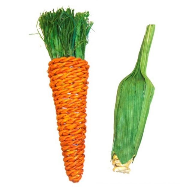This Carrot & Corn Chew Toy from the Critter’s Choice range is made from high quality sisal and is suitable for all small animals. The sisal toy provides pets with the opportunity to gnaw satisfying their natural instincts to nibble. Nibbling the toy helps to wear down the contantly growing teeth of rodents, promoting optimum dental health.