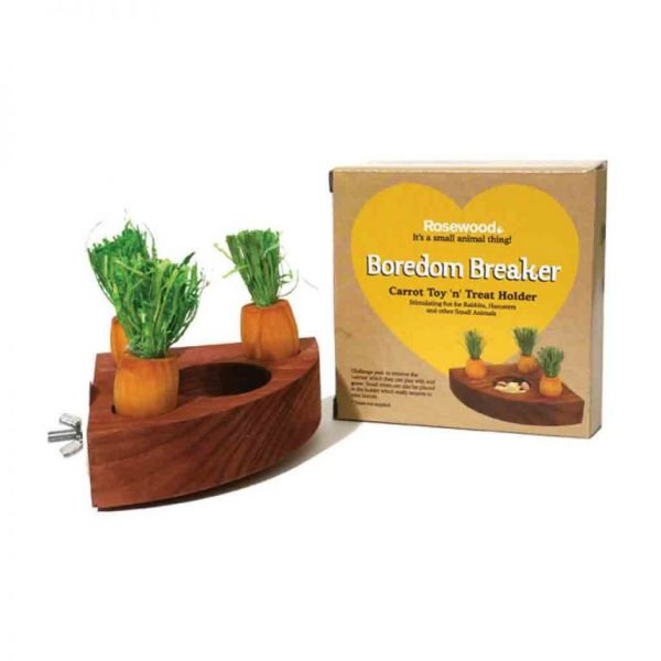 A great boredom breaker for your small animal, this Rosewood Carrot Toy ‘n’ Treat Holder has three wooden carrots that can be removed and gnawed on.